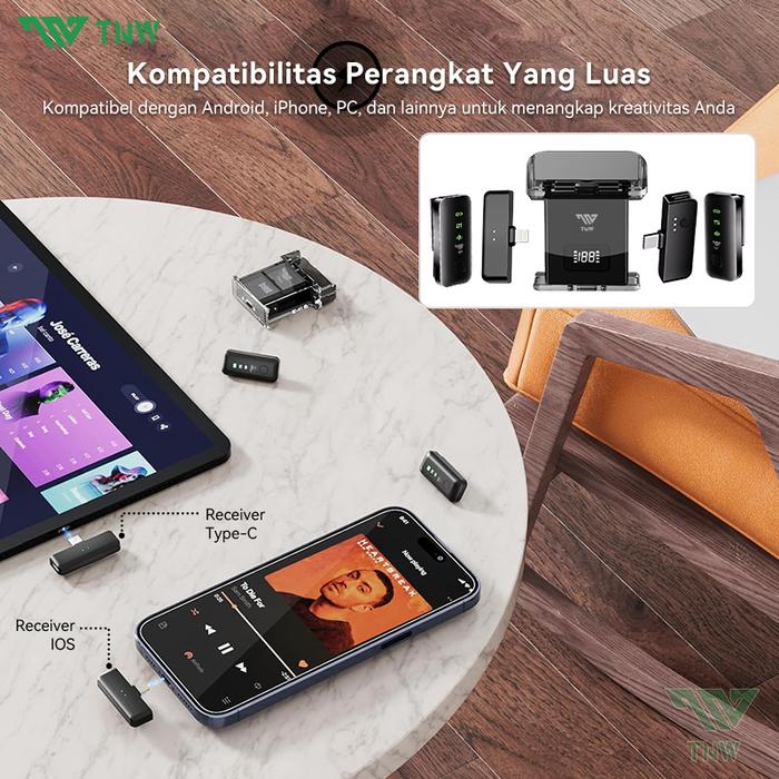 FLASH SALE TNW A21 PRO WIRELESS MICROPHONE MIC CLIP ON DUAL MIKROFON LAVALIER MICROPHONE WIRELESS MIKROFON IPONE DAN CHARGING CASE MIC WIRELESS UNTUK YOUTUBER FACEBOOK VLOG LIVE STREAMING A21 PRO