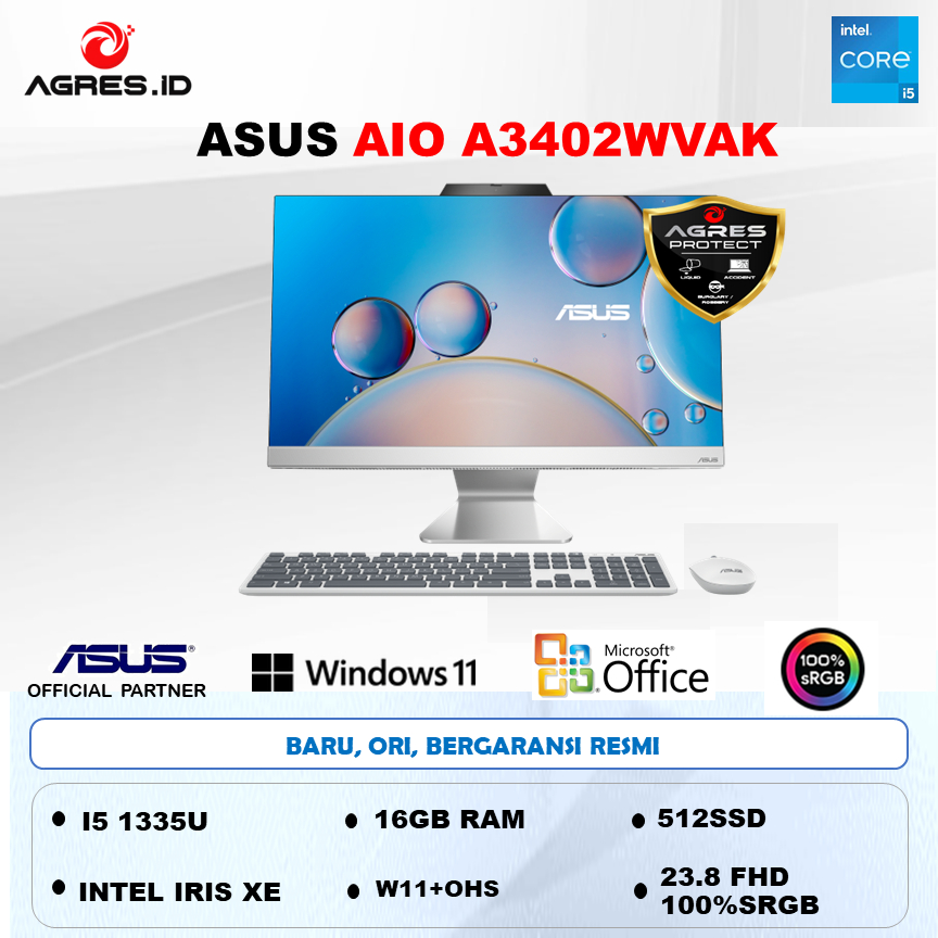 ASUS PC ALL IN ONE A3402WVAK I5 1335 16GB 512GB W11+OHS 23.8FHD 2Y WHT
