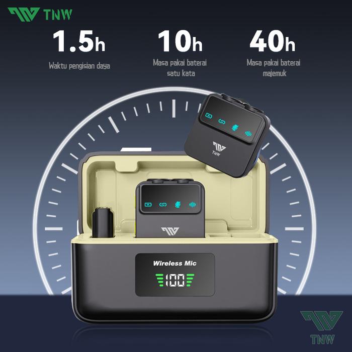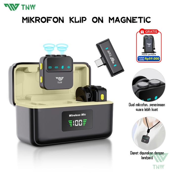 FLASH SALE TNW A35 WIRELESS MICROPHONE CLIP ON MIC MAGNETIC MIKROFON NIRKABEL LAVALIER DUAL MIC NOISE REDUCTION UNTUK VIDEO VLOG LIVE STREAM HITAMTYPE C