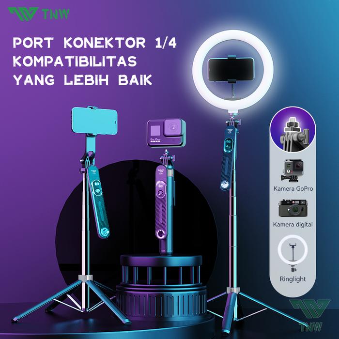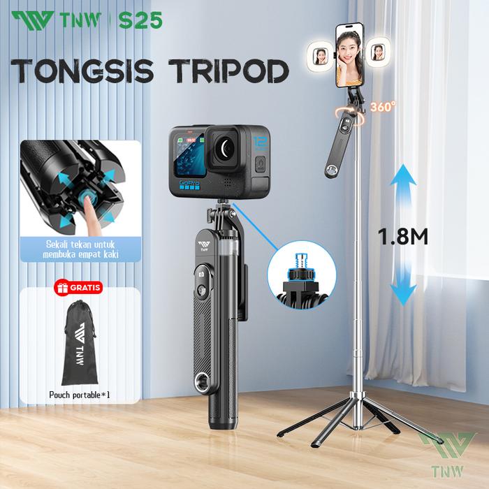 FLASH SALE TNW S25 180CM BLUETOOTH TONGSIS TRIPOD SELFIE STICK WITH REMOTE PORTABEL TRIPOD DENGAN 14 ADAPTOR UNTUK HP KAMERA DSLR HITAM S25