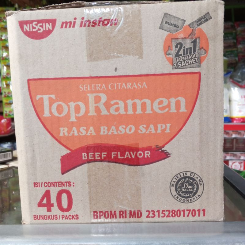Mie Top Ramen 32gr Rasa Baso S Harga 1 Dus isi 40pcs/bungkus