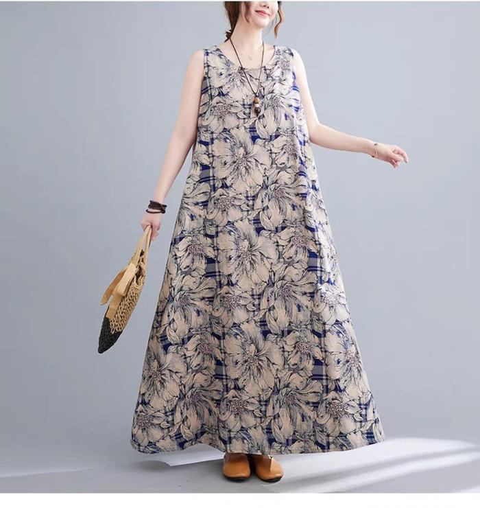 FLASH SALE LC024 BIG SIZE DRESS FASHION SUMMER TERBARU BUNGA HIJAU L