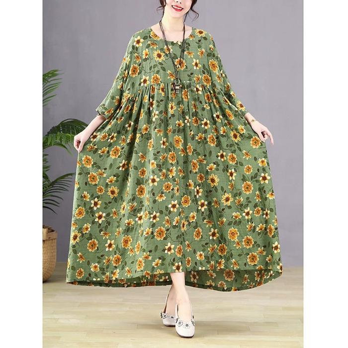 FLASH SALE JOSEPHINE JUMBO DRESS TIPIS NERAWANG PREMIUM OVERSIZED DRESS FLORAL SUMMER FASHION HIJAU