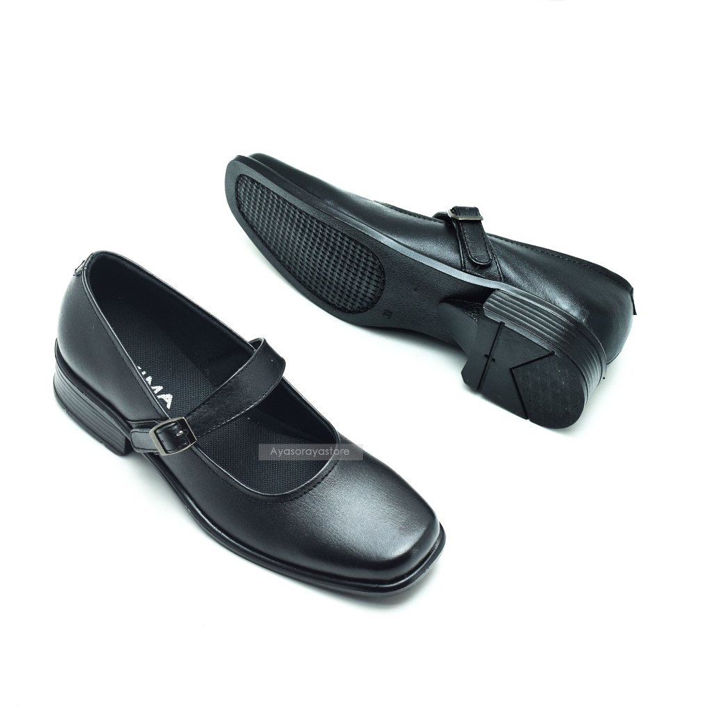 SEPATU PANTOFEL SEKOLAH PASKIBRA WANITA FORMAL KULIT WARNA PUTIH HITAM BESAR JUMBO 36 44 - XIMA XPK
