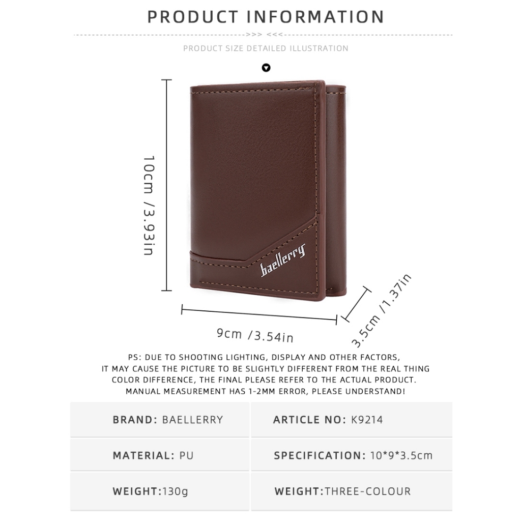BAELLERRY K9214 Dompet Pria Lipat Pendek Kartu Bahan Kulit PU Leather Premium BAEOS