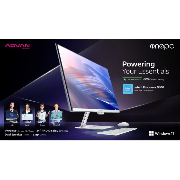 PC AIO ADVAN OnePC Intel N100 4GB 128GB 24" FHD Windows 11 All In One