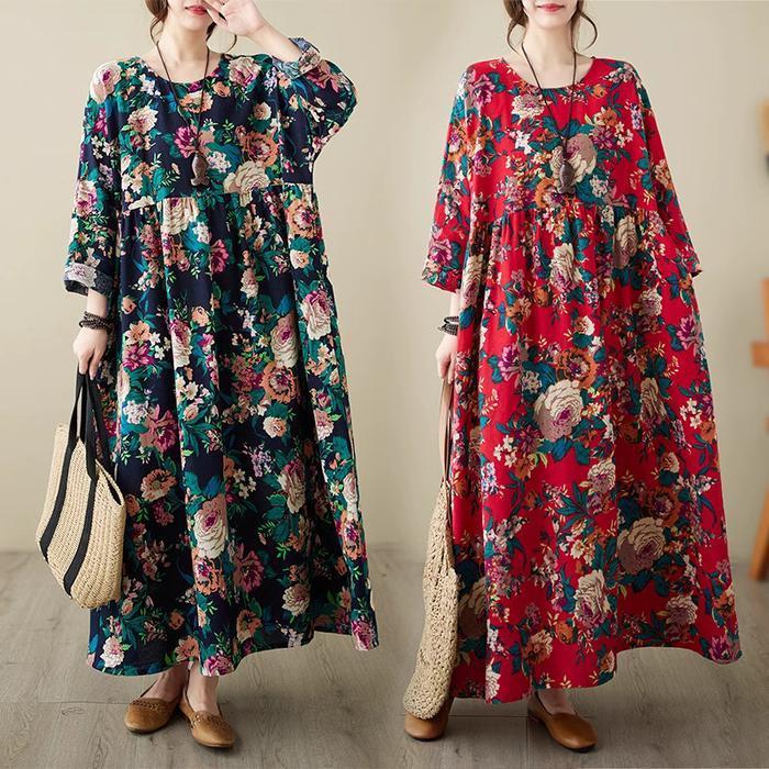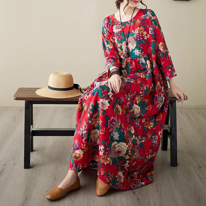 FLASH SALE LC606 PREMIUM OVERSIZED DRESS FLORAL LENGAN PANJANG FASHION TERBARU MERAH