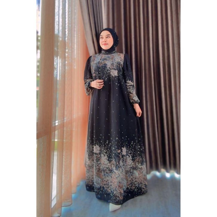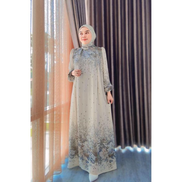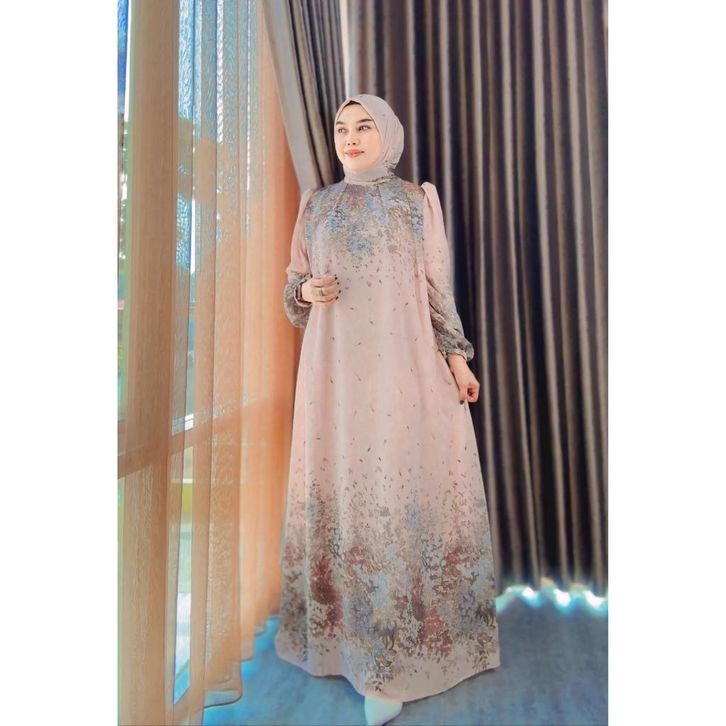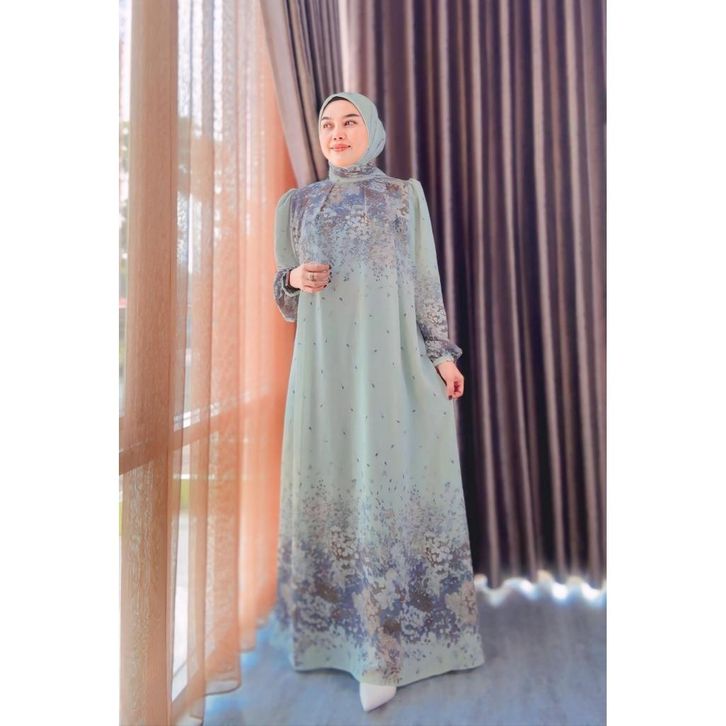 gamis ceruti plus kerudung motif premium terbaru kekinian dress wanita kondangan