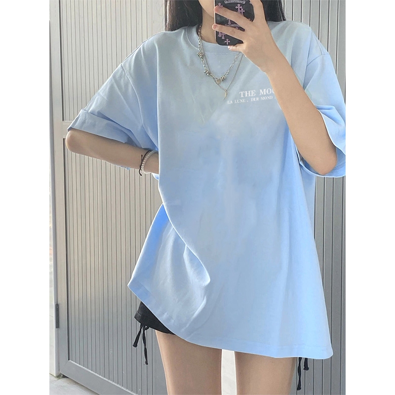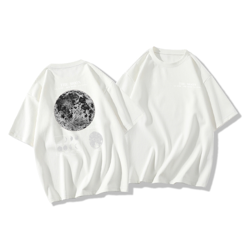 KAOS LENGAN PENDEK OVERSIZE WANITA MOON PRINT/BAJU ATASAN WANITA TERBARU KRIM STYLE/KAOS POLOS HITAM PREMIUM ATASAN KEKINIAN WANITA P001617