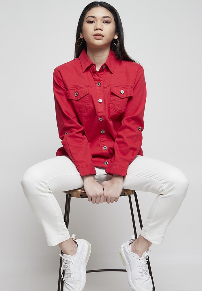 FLASH SALE IHANG SOFT DENIM JACKET WANITA RED L