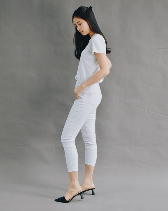 FLASH SALE CELANA PANJANG WANITA IHANG SOFT DENIM DYE JEGGING PANTS WHITE PUTIH S
