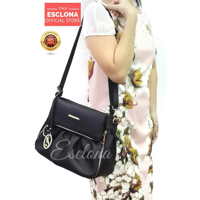 FLASH SALE TAS WANITA BATAM ESCLONA 037 TAS TANGAN HANDBAG SELEMPANG WANITA IMPOR BLACK