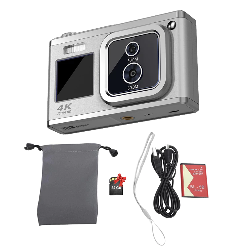 Camera Digital 4K Dual Screen 50MP+30MP 16X Zoom High-Definition Selfie Beauty Camera +32GB Kartu Memori ZLX