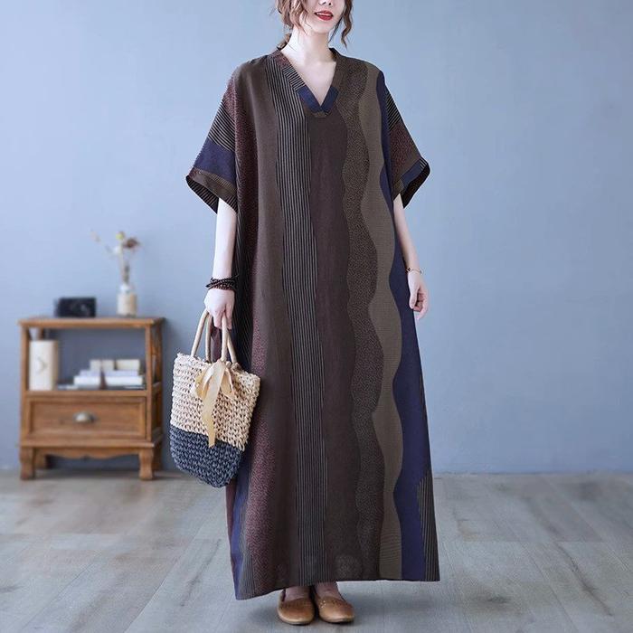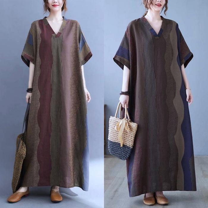 FLASH SALE CORAL DRESS TIPIS MOTIF GELOMBANG SUMMER RETRO FASHION TERBARU MERAH COKLAT