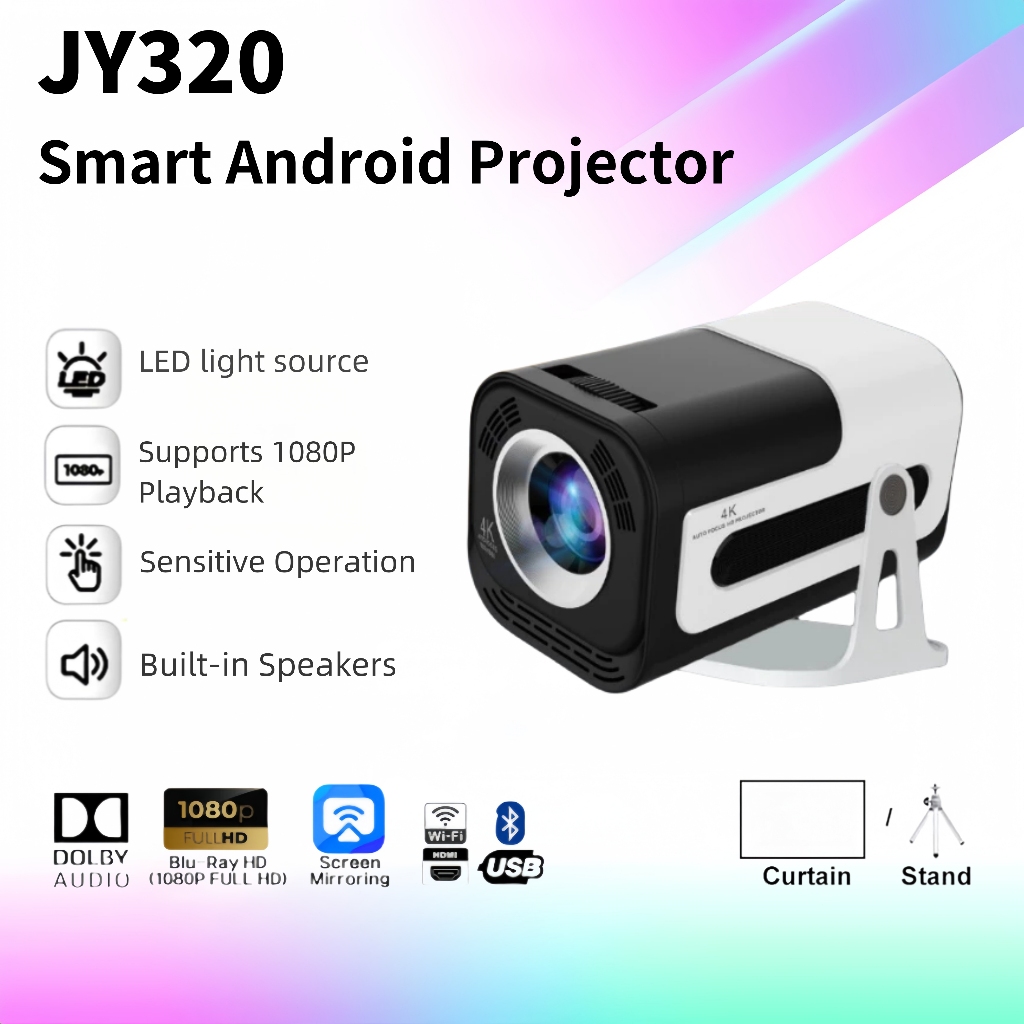 JY320 PROYEKTOR 180ANSI LUMEN / T950S CHIP ANDROID 13.0 1080P 4K LAYAR SENTUH PEMODELAN 2.4 + 5GWIFI
