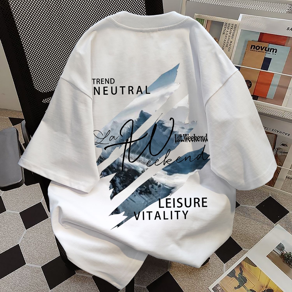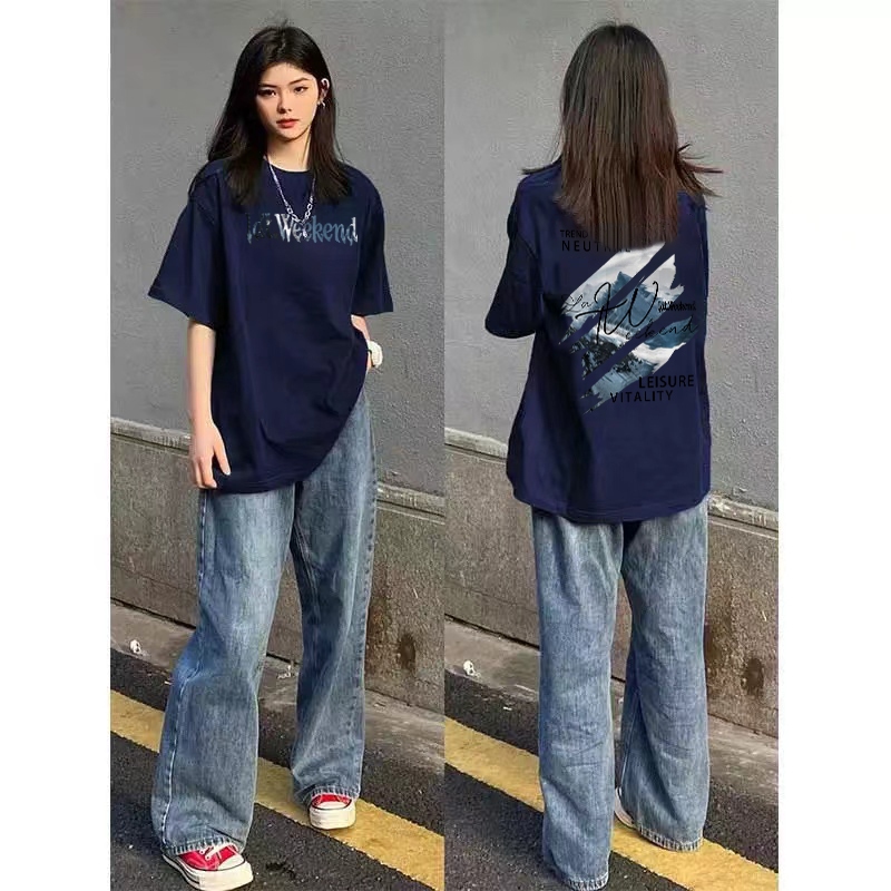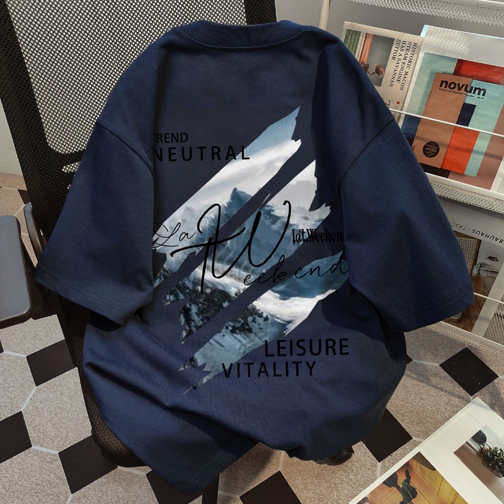 FORTEID BIRU LAUT T-SHIRT LENGAN PENDEK BAJU KAOS OVERSIZE WANITA BAJU |KAUS WANITA KOREA BAJU ATASAN WANITA TERBARU (CETAKAN POSTER GUNUNG SALJU) COTTON ATASAN KAOS /KAOS LUCU WANITA