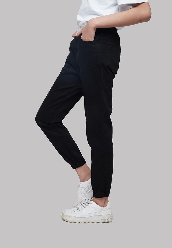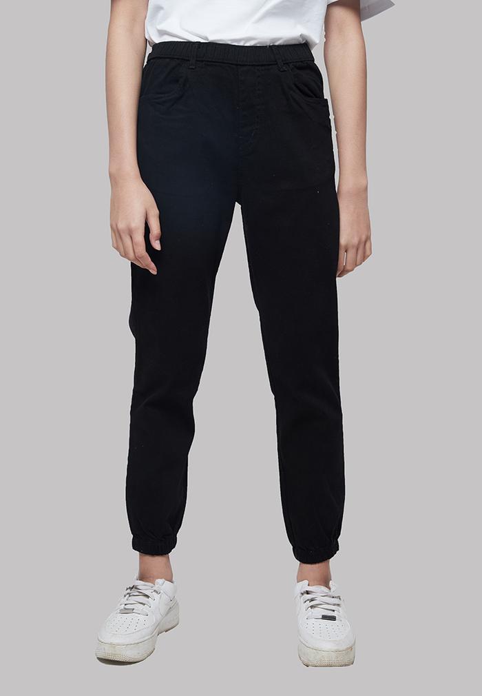 FLASH SALE CELANA PANJANG WANITA IHANG SOFT DENIM JOGGER PANTS BLACK L