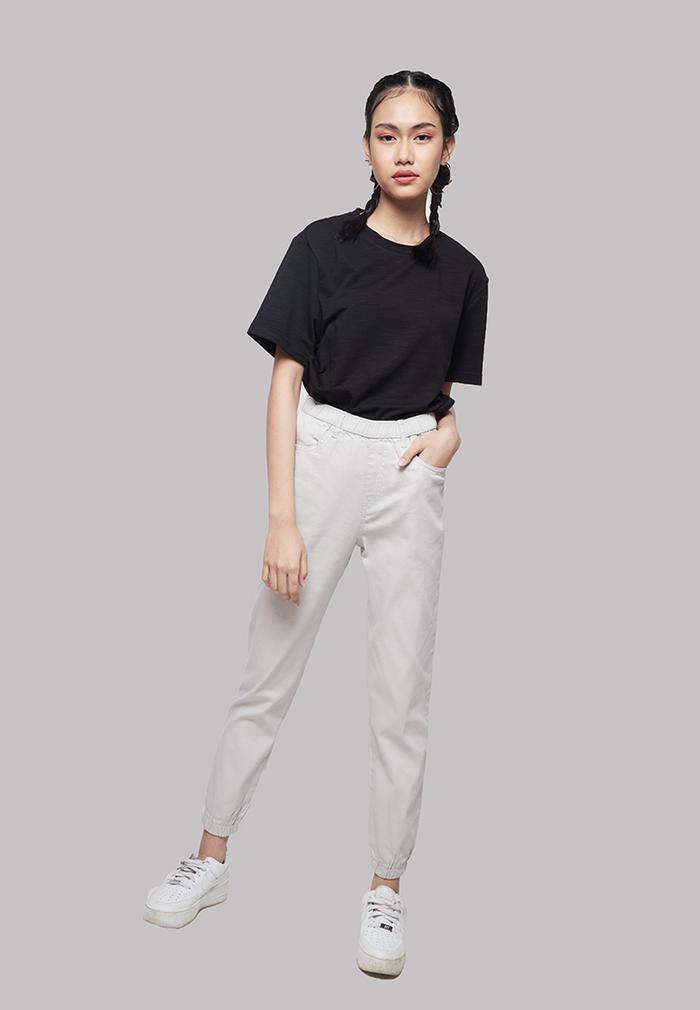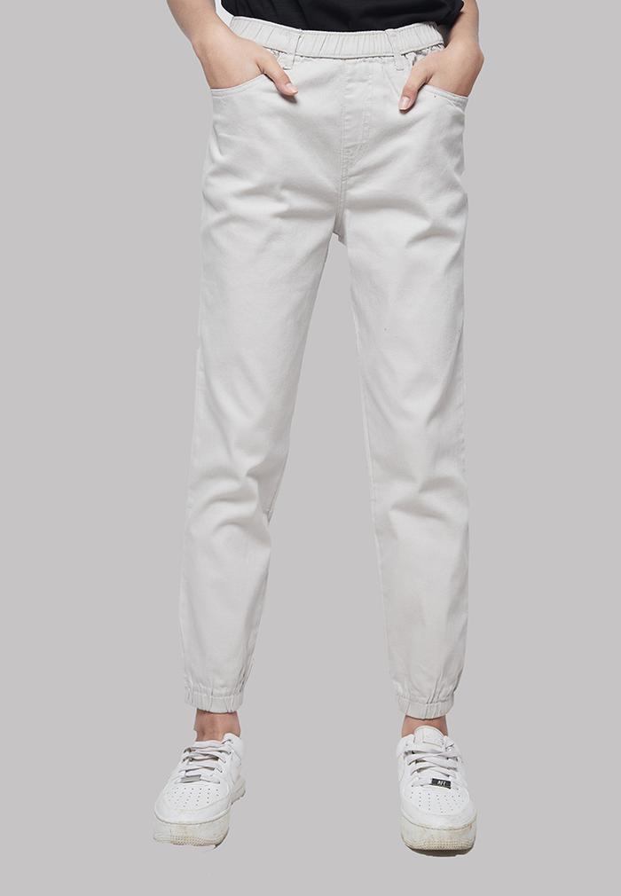 FLASH SALE CELANA PANJANG WANITA IHANG SOFT DENIM JOGGER PANTS BROKEN WHITE S