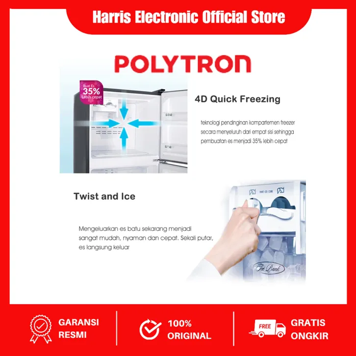 TERLARIS POLYTRON Kulkas 1 Pintu Metallic 180 Liter PRB 187PR/187LB