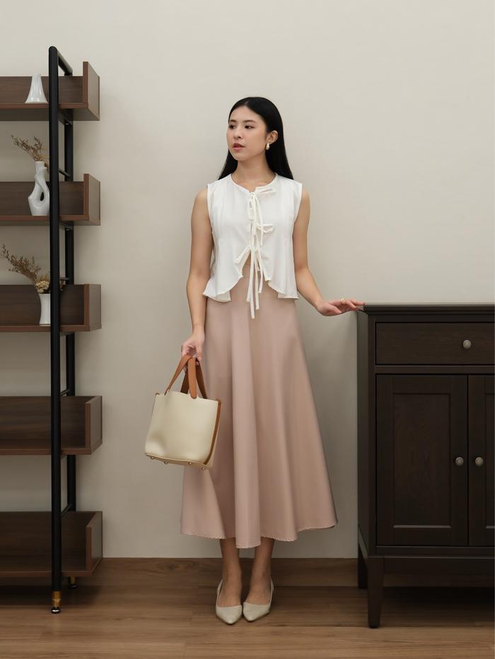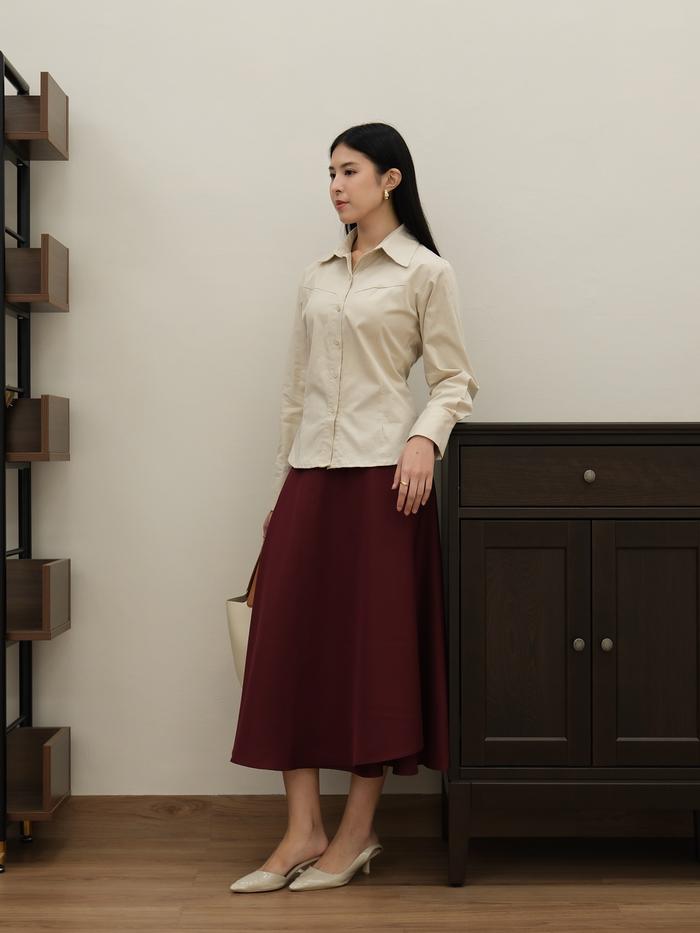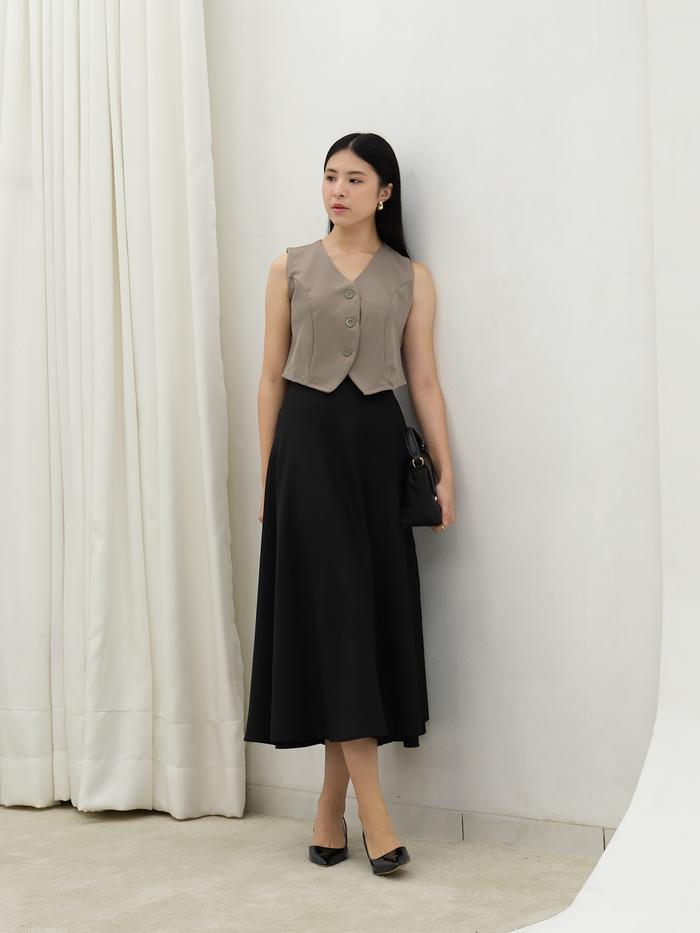 FLASH SALE ROK FLARE MAXI WANITA HIMARI SKIRT HULM CREAM MIDI 70 CM
