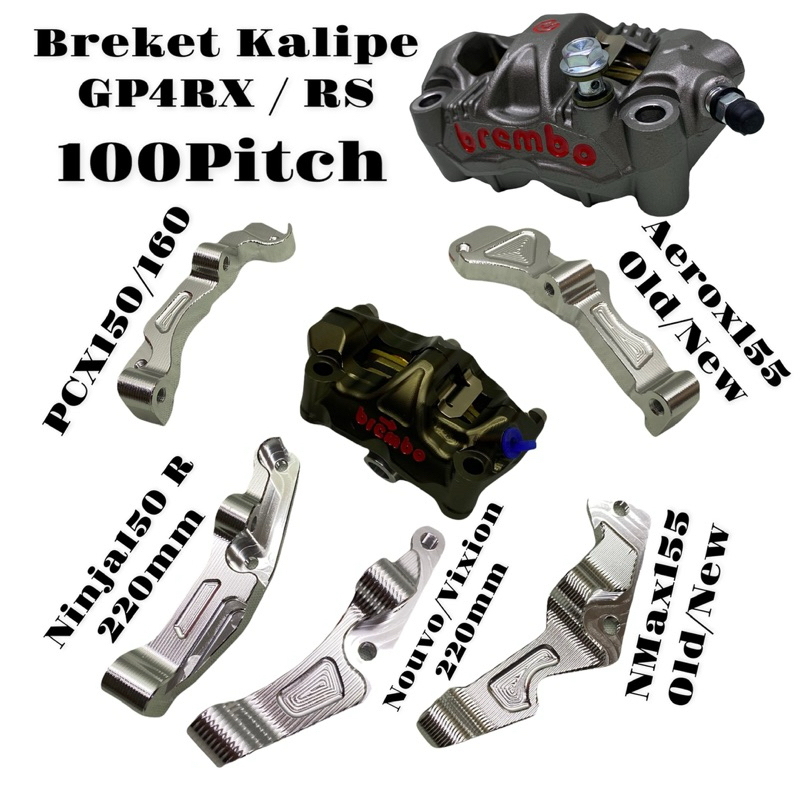 BREKET atau KALIPER 4Piston RADIAL 100 Pitch 100mm Universal Kaliper Brcmbo GP4-RX GP4-RS Stylema M4 M7 M50 M432 Nissin