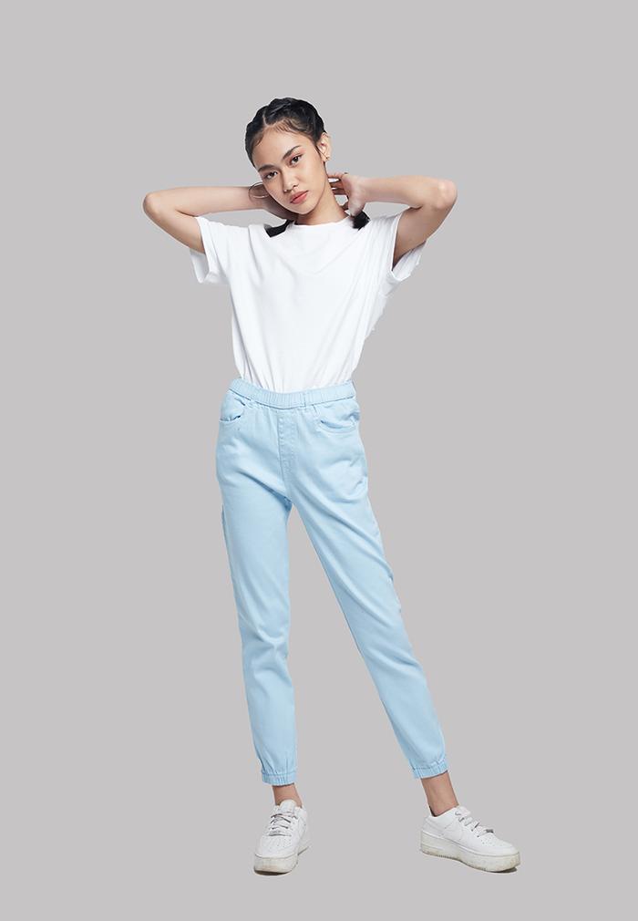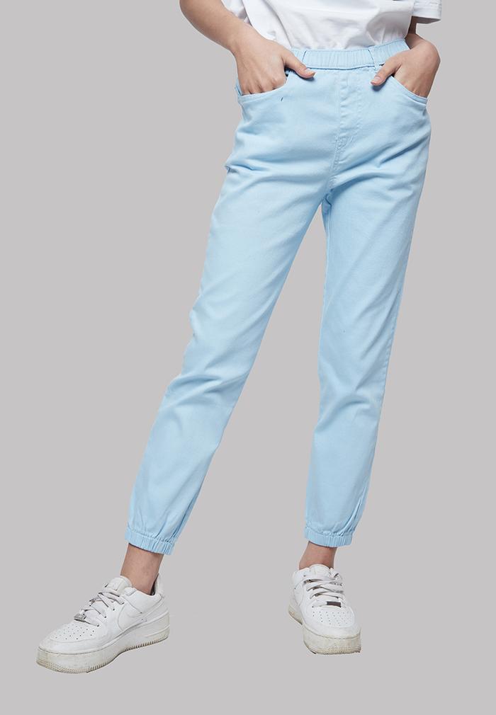 FLASH SALE CELANA PANJANG WANITA IHANG SOFT DENIM JOGGER PANTS LIGHT BLUE L