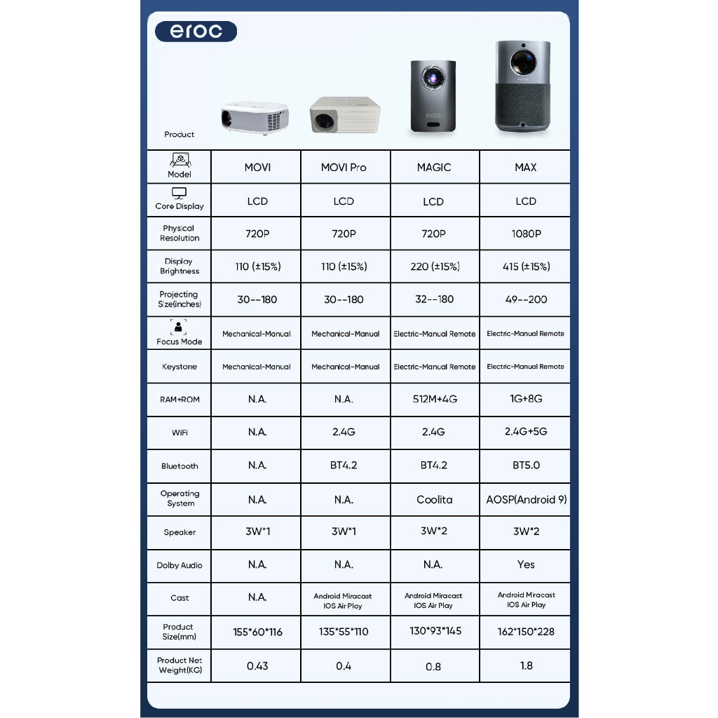 EROC MINI PROJECTOR - MOVIE PORTABLE PROJECTOR - BUILT IN SPEAKER - LCD DISPLAY - MOVI N1