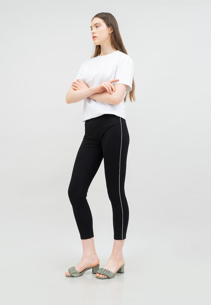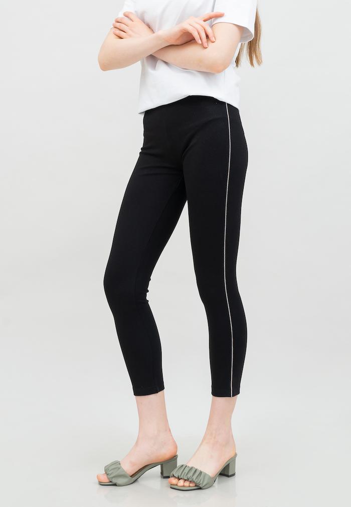 FLASH SALE CELANA PANJANG WANITA IHANG 4 WAY STRETCH KNIT STRIPE PANTS BLACK S