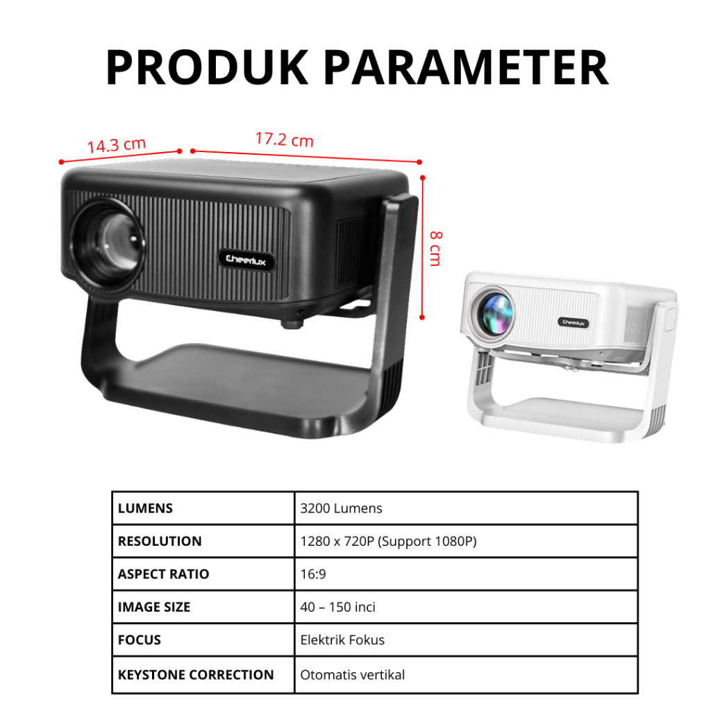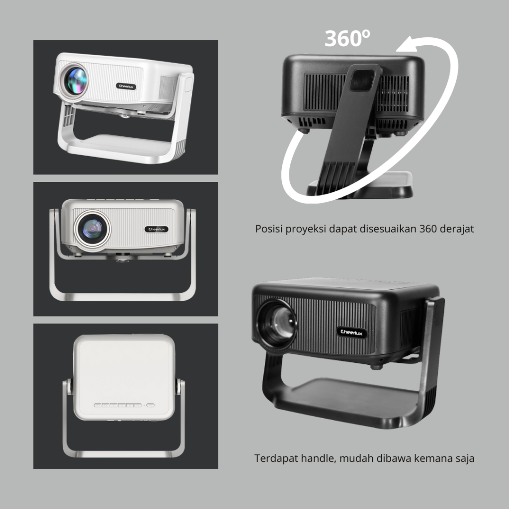 PROYEKTOR CHEERLUX C6B ANDROID WIFI MIRRORING KE HP 3200 LUMENS 1080P TERDAPAT HANDLE 360 ROTATING ELEKTRIK FOCUS