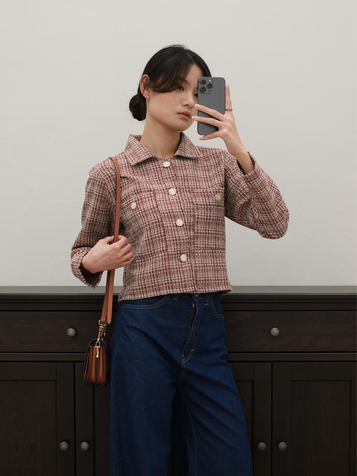 FLASH SALE BLAZER TWEED WANITA HAERIN BLAZER HULM BABY PINK M