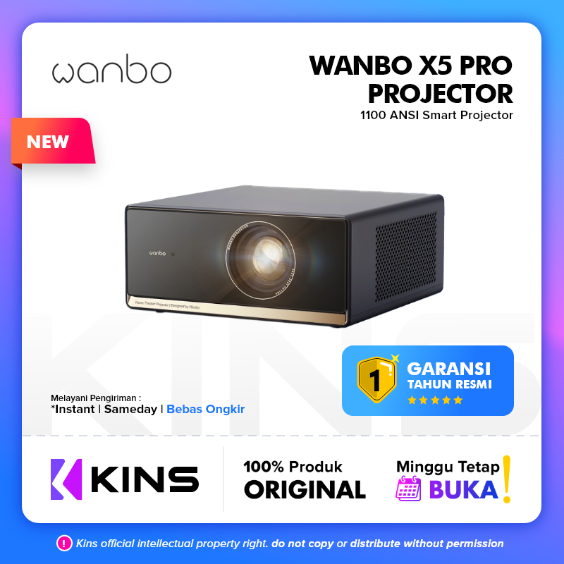 WANBO X5 PRO PROYEKTOR GOOGLE TV FHD 1080P 2X5W HIFI STEREO SPEAKERS 1100 ANSI LUMENS SMART PROJECTOR