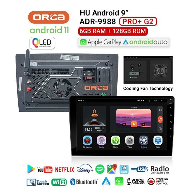Headunit Android Orca Pro+ G2 QLED NFC 9/10 Inch DSP Ram 6/256