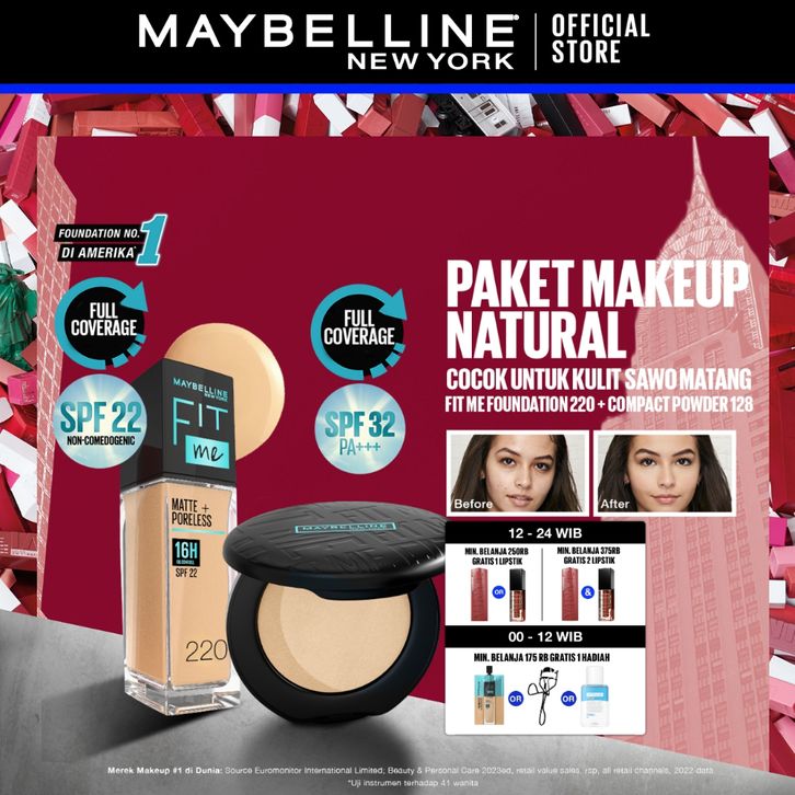 Maybelline Paket Makeup FIT ME Compact Powder + FIT ME Liquid Foundation FREE GIFT | Oil Control Tahan Lama