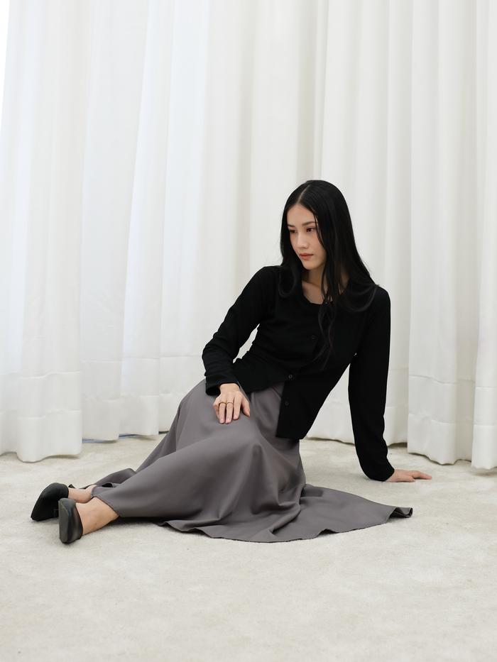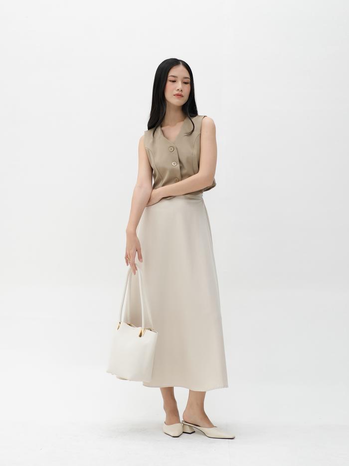 FLASH SALE ROK FLARE WANITA MADELINE SKIRT HULM CREAM M (PANJANG 85 CM)