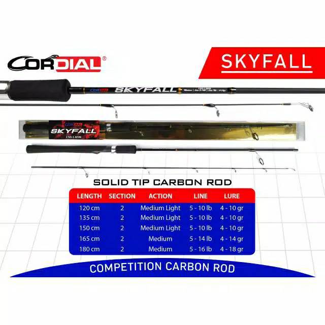 Joran Cordial SKYFALL | Solid Carbon Tip | 120 | 135 | 150 | 165 | 180 | Lentur | Kuat | Alat Pancing Unggulan