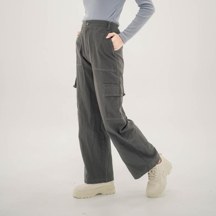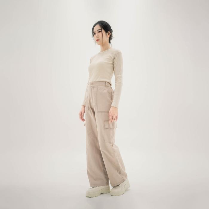 FLASH SALE HIGH WAIST CARGO PANTS WANITA BILLIE CARGO HULM WHITE M