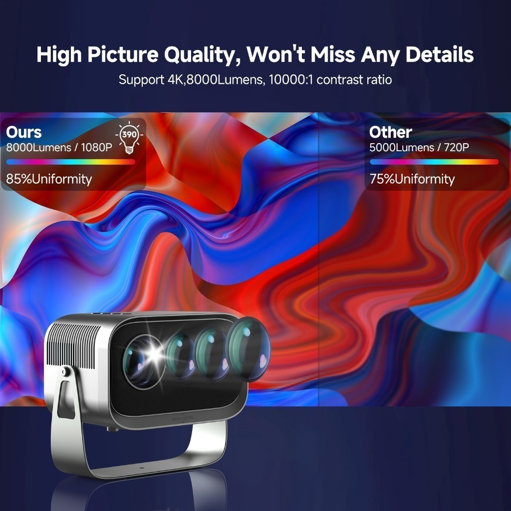 GOOJODOQ 10000 LM PORTABLE PROJECTOR WIFI 1+8G 4K FULL HD 1080P COMPATIBLE WITH IOS ANDROID