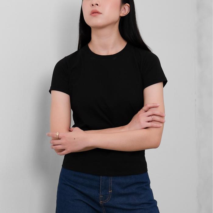 FLASH SALE KAOS FULL KATUN WANITA AMPM COTTON TSHIRT HULM BLACK S