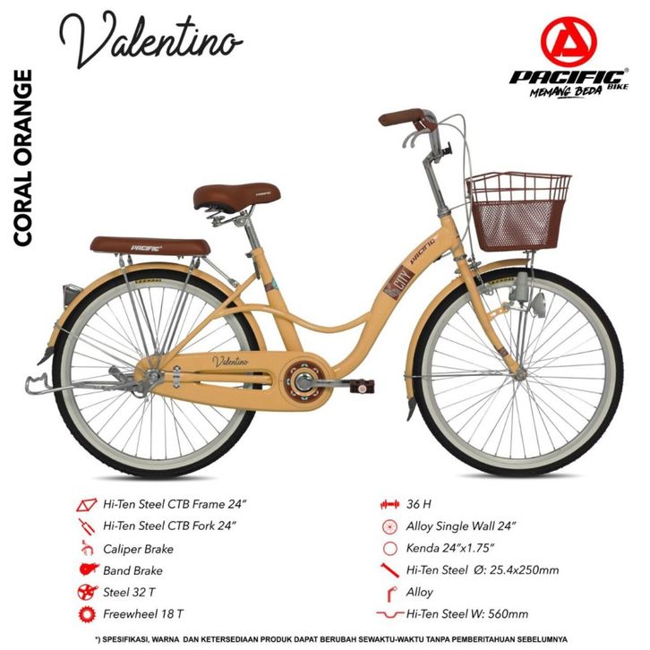 Promo Sepeda mini 24 26 inch pacific dewasa dan anak remaja valentino keranjang besi dan boncengan