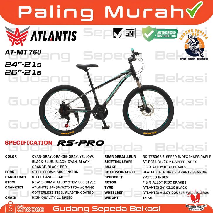 Promo Terlarisss!!! Sepeda Gunung MTB 24 26 Inch 760 // 790 21 Speed Atlantis New