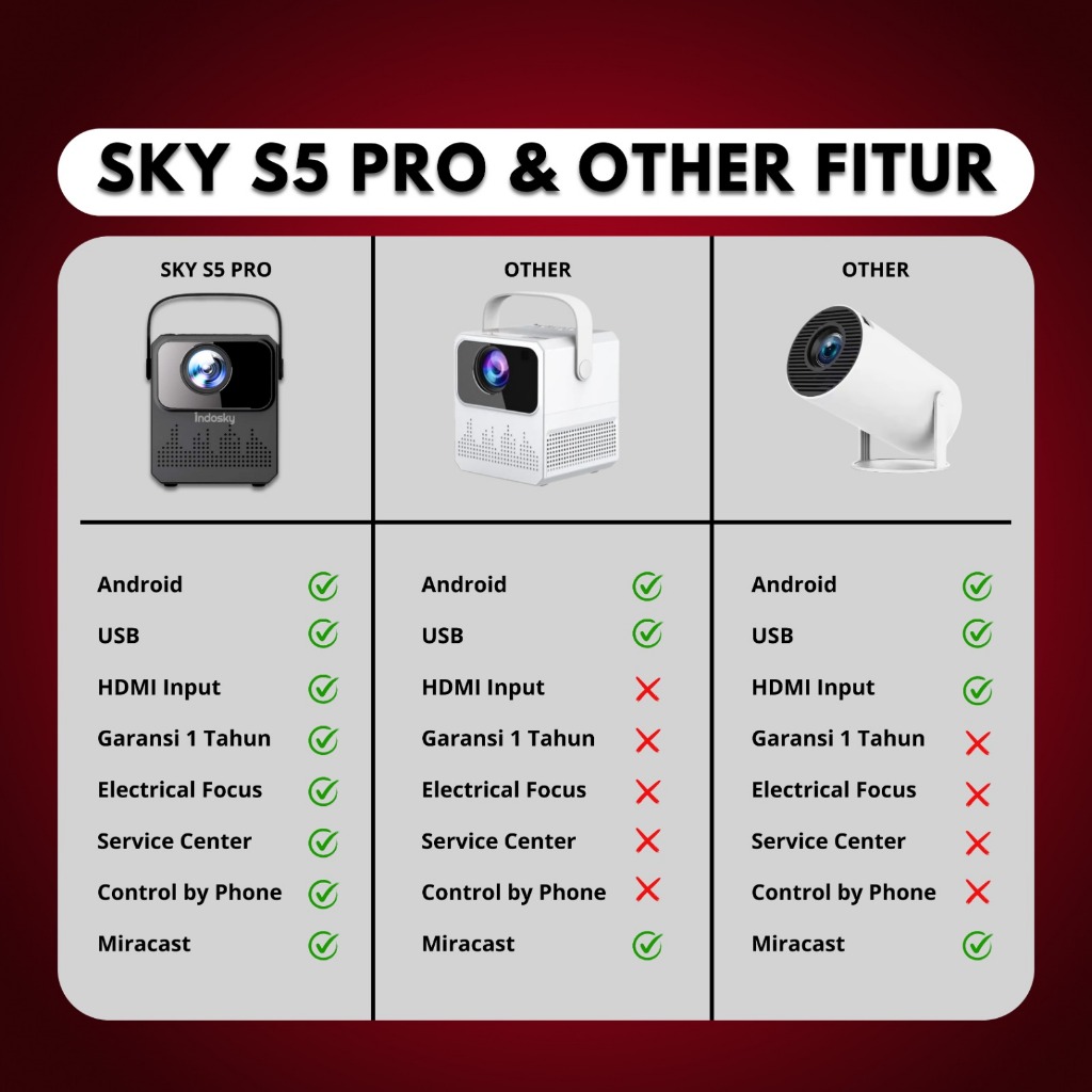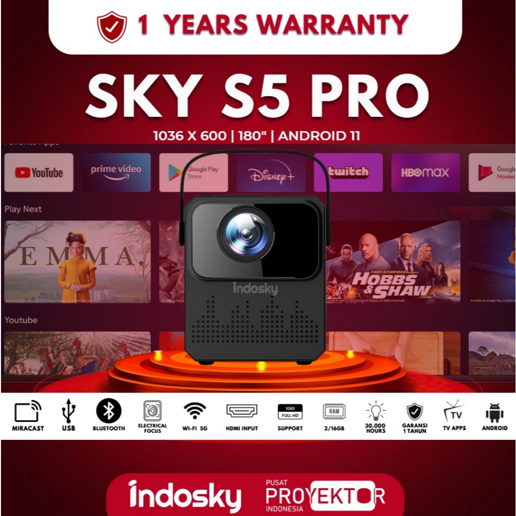 PPI - PROYEKTOR SKY S5 PRO - ANDROID TV | 180 ANSI | WIFI 5G | LAYAR BESAR 150”