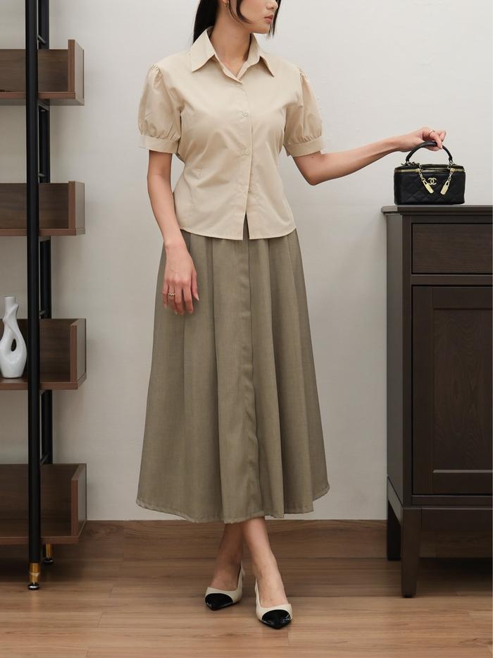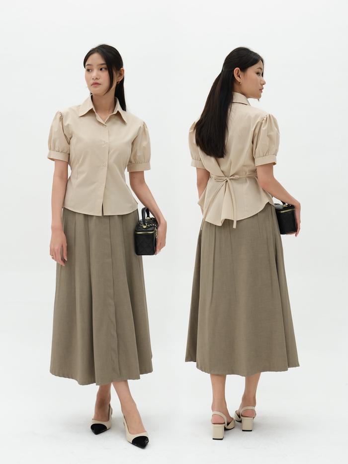 FLASH SALE KEMEJA FITTED WANITA ABBEY FITTED SHIRT HULM BEIGE L
