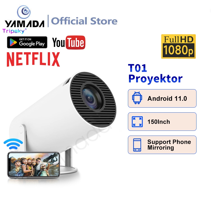 PROYEKTOR ANDROID HY300 SMART PROYEKTOR LCD 180 ANSI LUMENS HD 1080P BLUETOOTH5.0 2G+16G NETFLIX - YOUTUBE ANDROID 11.0