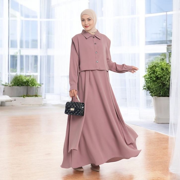 Baju gamis muslim wanita size s m l xl setelan dress plus rompi vest casual outfits asmarandana terkeren