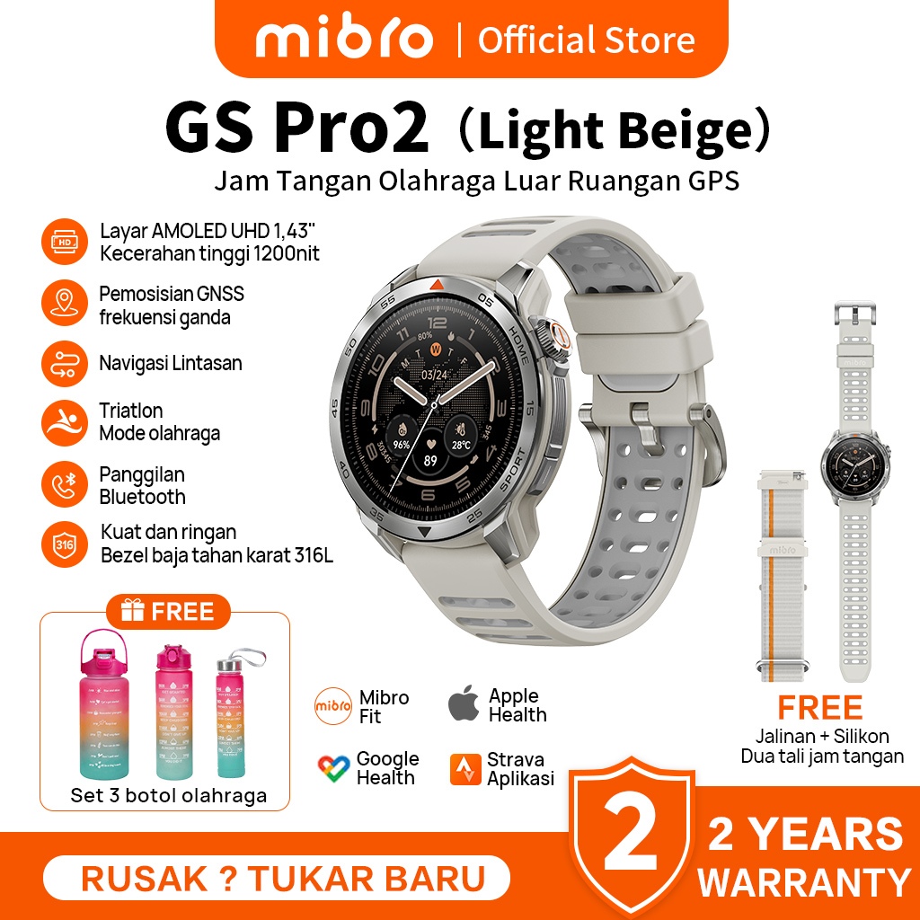 Mibro official Smart Watch GS Pro2 Light Beige| GPS Outdoor Sport Watch|Rugged Yet Lightweight|The 316L stainless steel bezel|1.43 ”AMOLED UHD screen|2-year warranty