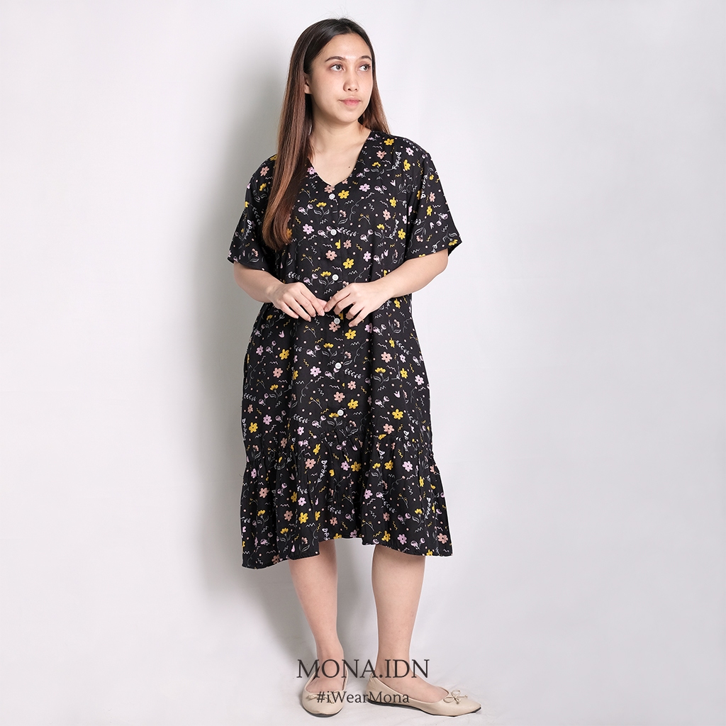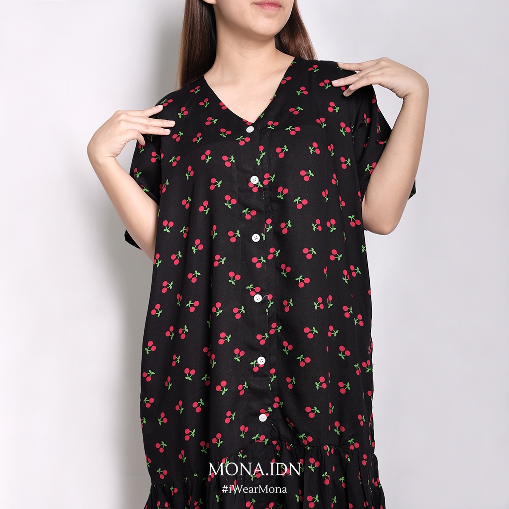 MONA - Diana Baju Tidur Dress Ruffle Wanita Daster Lounge Wear Piyama Busui Bumil Motif Rayon