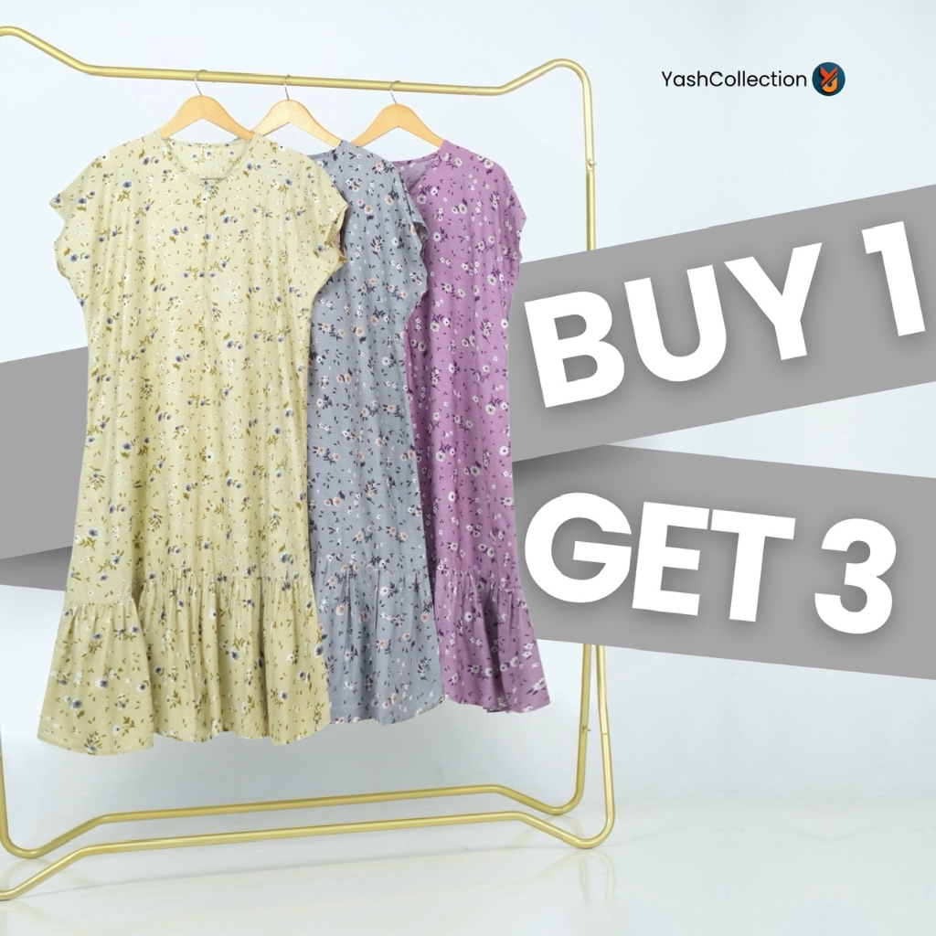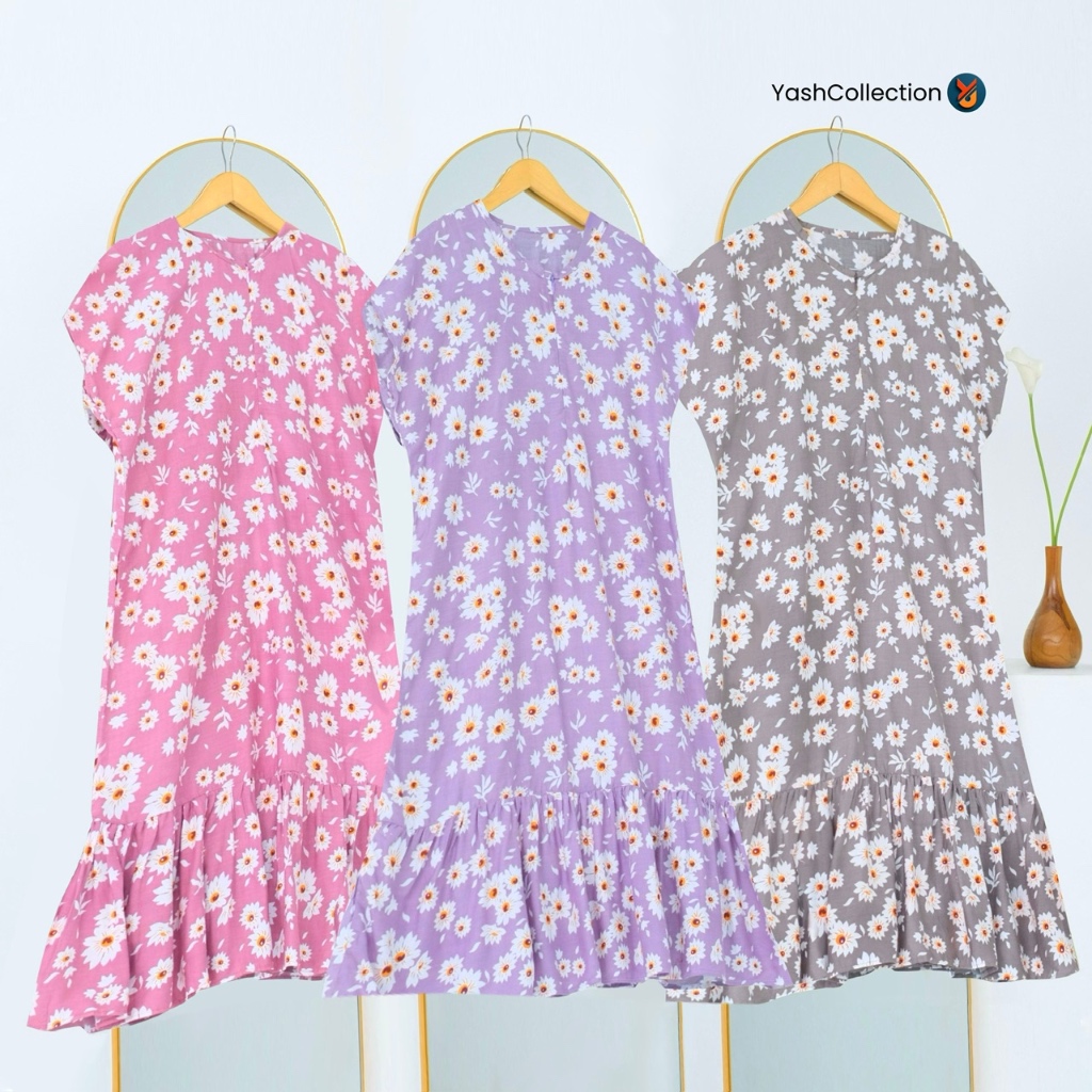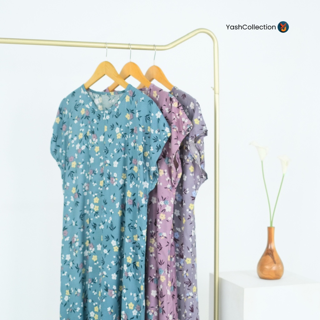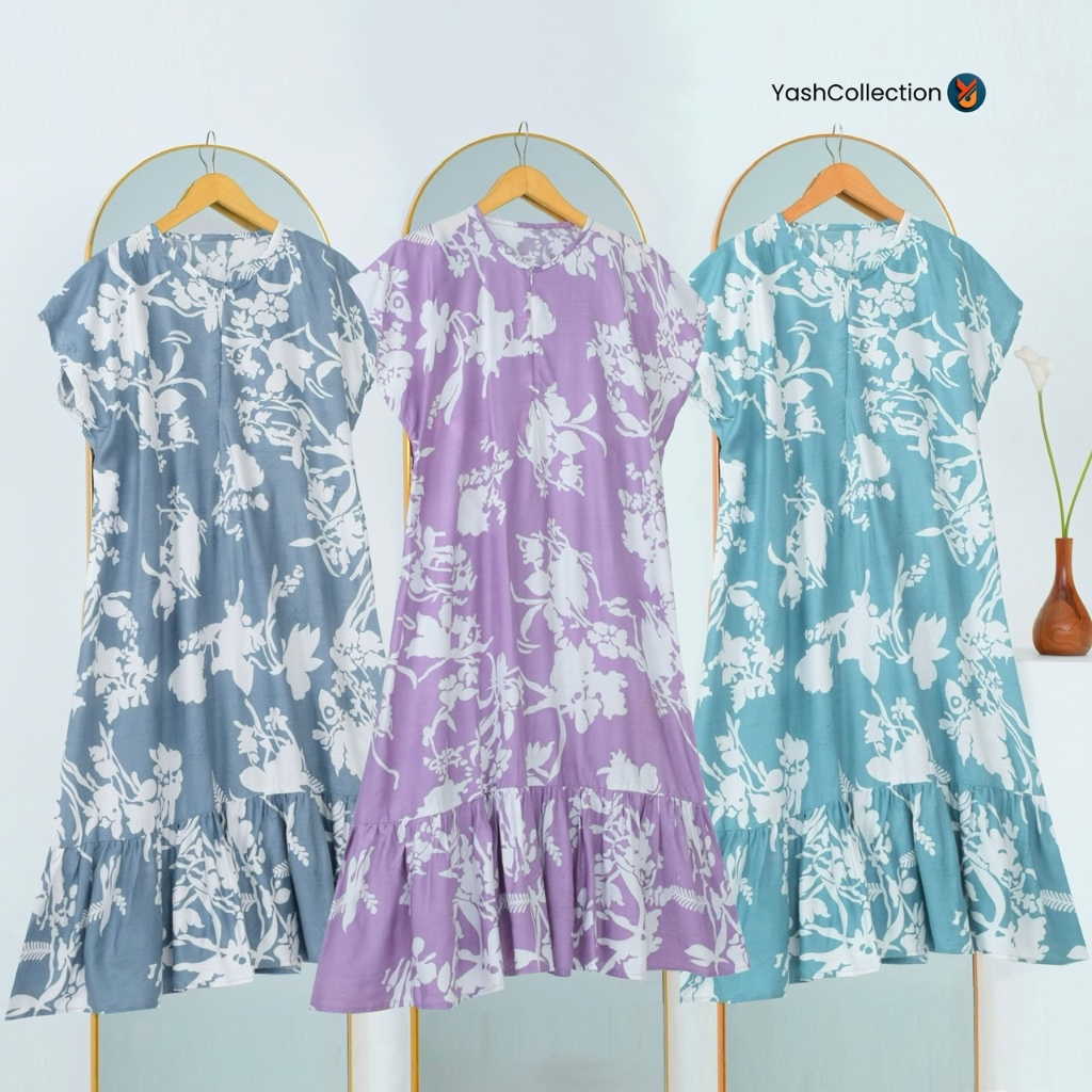 Daster Ruffle Bundling 3 Pcs Midi Dress Wanita Panjang Selutut Motif Busui Bumil Rempel Pendek Nyaman Santai Tidur Katun