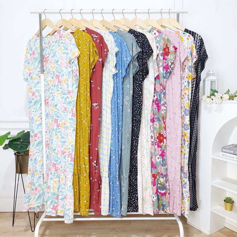 Lova Dress / Daster Long Ruffle / Daster Busui friendly / Rayon Premium / Ada SAKU / LD 120cm