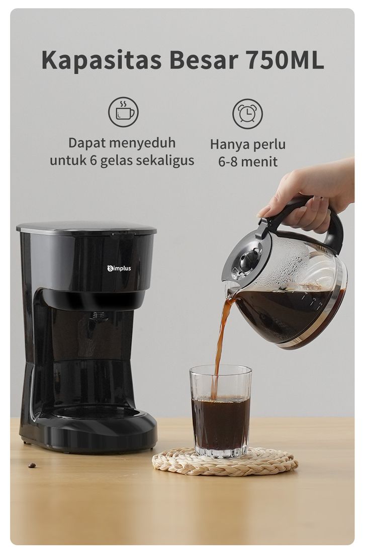 Mesin Kopi Drip Rumahan Kapasitas Besar 750ml/1250ml Kaca Borosilikat Tinggi Simplus