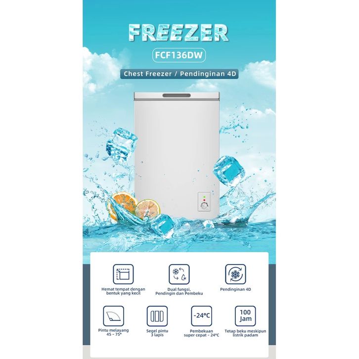 Changhong FCF136DW 110 L CHEST FREEZER BOX FAST FREEZER LEMARI ES KRIM 110 LITER 125W FREEZER ES BATU 100 200 KULKAS GEA
